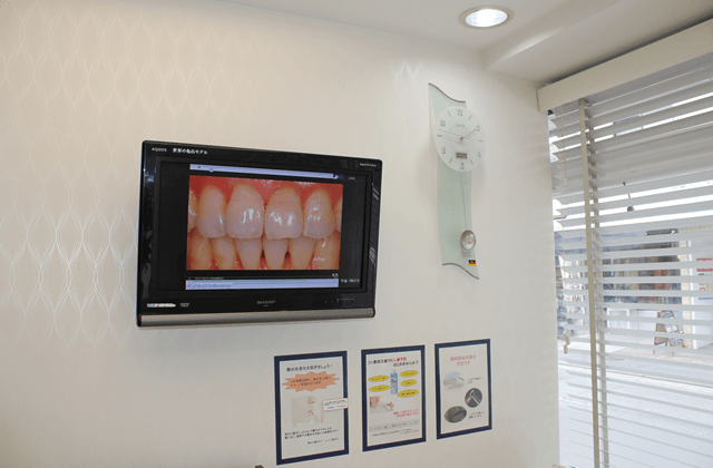 待合室のモニターには当院での治療内容や症例などを案内しております。